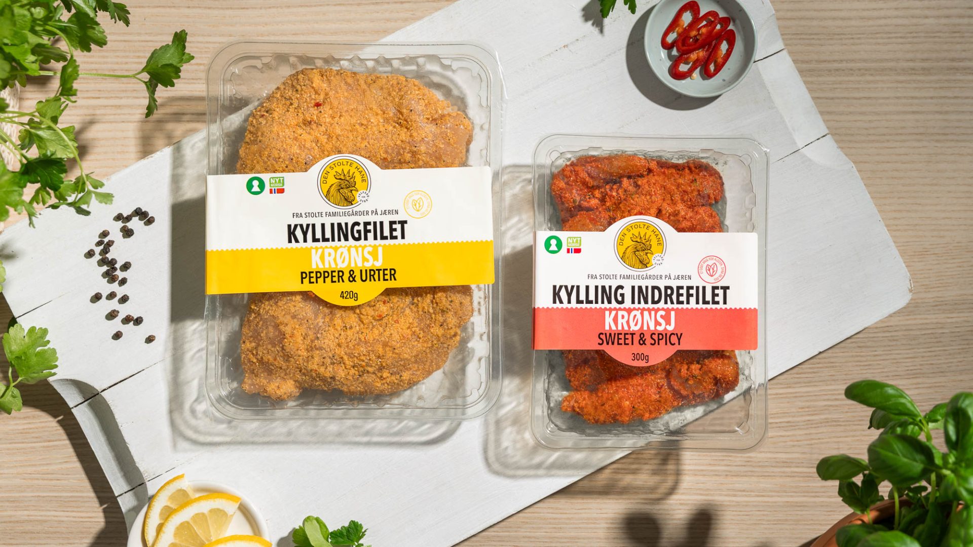 Nå lanserer Den Stolte Hane en helt ny serie med lett panert og ferdig krydret kylling! Vi stemmer for mindre jobb og mer Krønsj i hverdagen med god og saftig kylling. Det er to ulike varianter av Krønsj i butikken, velg mellom kyllingfilet med Pepper & urter eller Sweet & Spicy kylling indrefilet.