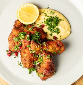 Crispy Hot Wings med aioli, granateple og friske urter