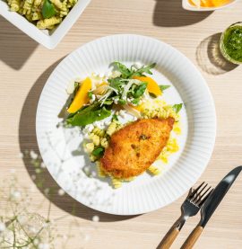 Michelin Crispy Chicken Nuggets med gressløkmayo og fenikkelkompott